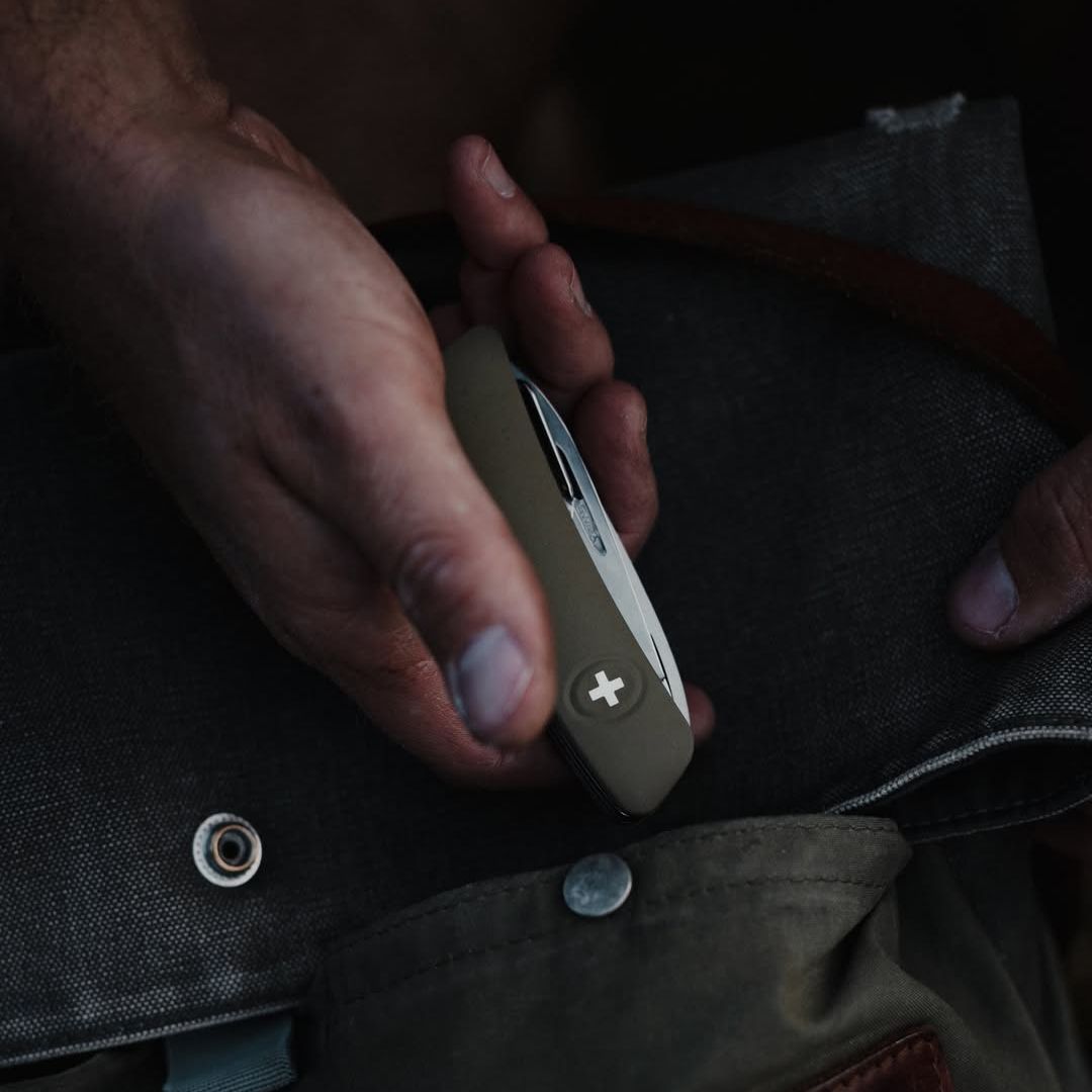 Mitmekülgne armee taskunuga SWIZA® D03 Allmatt Olive oma revolutsioonilise kuju ja kindla haarde ning pehmepuutelise käepidemega on kõige mugavam ja hõlpsamini kasutatav Šveitsi nuga läbi aegade.