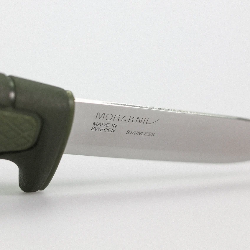 91 mm pikkune Rootsi roostevaba teras (12C27) kõvadusega 56,5 HRC vastupidavuse ja väga suure korrosioonikindluse tagamiseks.