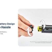 • Töötab laetava ja vahetatava RCR123A Li-ion akuga (3.6/3.7 V, soovitatav min. 950 mAh)